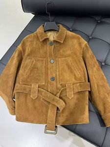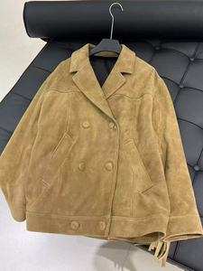 2025新款秋冬反绒羊皮流苏外套女挺阔时髦系带