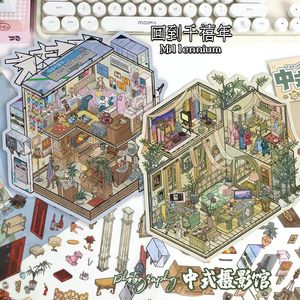 90.0艺蓝造景贴纸复古场景贴纸3D立体小屋微缩场景拼贴手帐贴纸