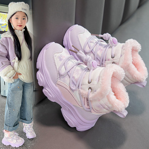 女童雪地靴皮面防水2025冬季款加绒加厚儿童大棉短靴男童保暖靴子