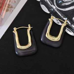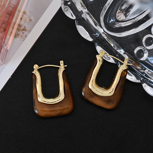跨境热卖新款树脂彩色耳扣港味十足耳饰批欧美高级感几何U形耳环