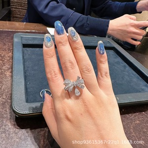 高版本蝴蝶结满钻流苏戒指女拼接方钻丝带bow精工经典款质感戒指