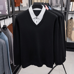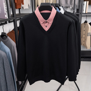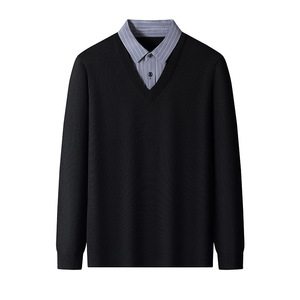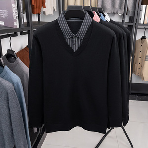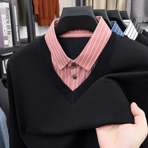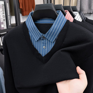 6羊毛针织假两件2025秋季新款商务休闲时尚百搭条纹打底男士毛衣