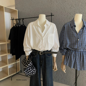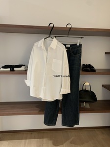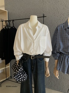 【WGWE】6742早秋新款白色长袖女韩系宽松慵懒风休闲气质上衣衬衫
