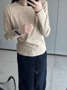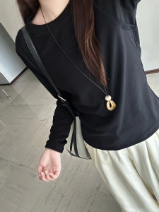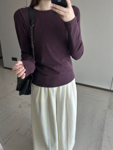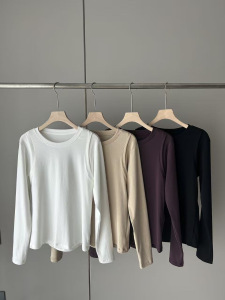 【双正肩长袖】秋季新品圆领长袖T高弹不变形微收腰显瘦透气打底