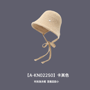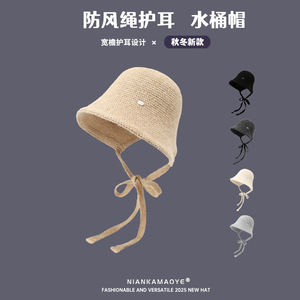 韩版简约复古长系带针织水桶帽女秋冬出游百搭遮脸显脸小毛线盆帽