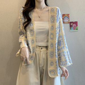 时尚高级女士针织衫2025新款早秋钩花镂空胖mm显瘦外套开衫A6649