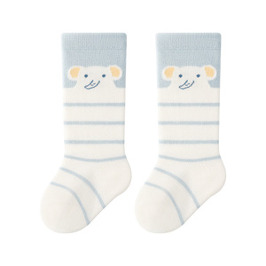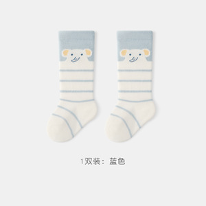 卡通小象条纹儿童小腿袜 春秋新品A类精梳棉宝宝袜无骨长筒袜子潮