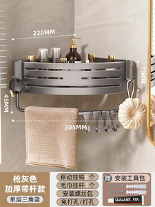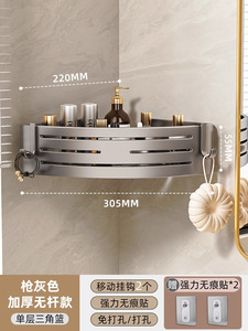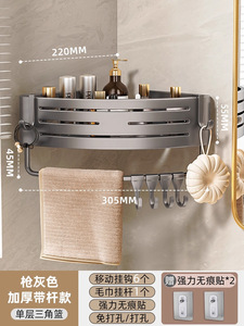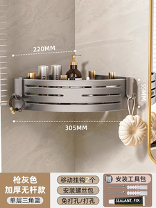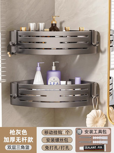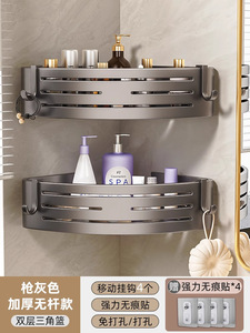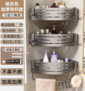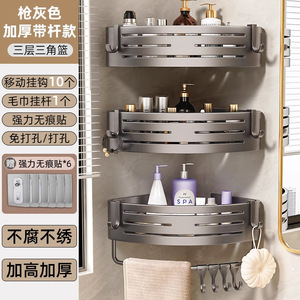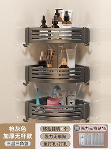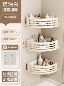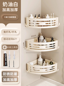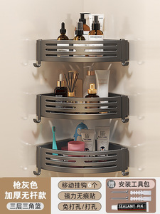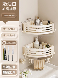 浴室置物架卫生间免打孔墙上加高转角收纳篮壁挂式浴室洗漱三角架