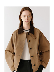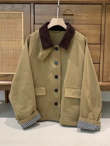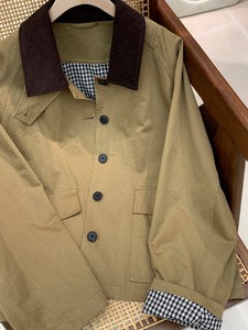 禾家25早秋新款小个子短款斜纹棉外套夹克风衣宽松休闲百搭上衣