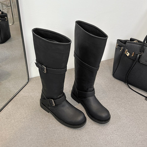 靴子女西部牛仔高筒靴厚底马丁靴新款粗跟美拉德长靴棕色切尔西靴