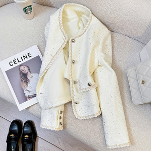 法式温柔白色小香风外套女2025新款春秋季设计感休闲开衫短款上衣
