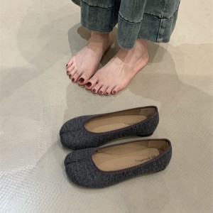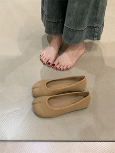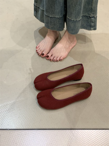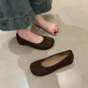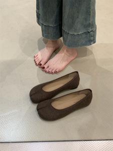 平底法式毛呢猪蹄单鞋女鞋子2025春秋软底配裙子芭蕾舞分趾晚晚鞋