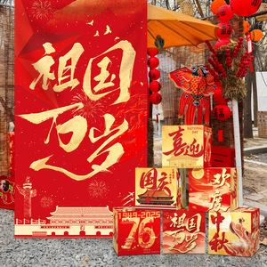 中秋国庆节场景氛围布置装饰挂布条幅商场活动店铺橱窗堆堆盒摆件