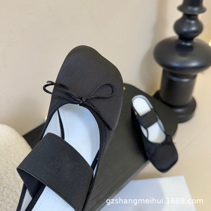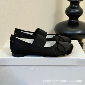 高定小众M6新款苹果头蝴蝶结粗高跟凉拖女马吉拉真丝面半拖穆勒鞋