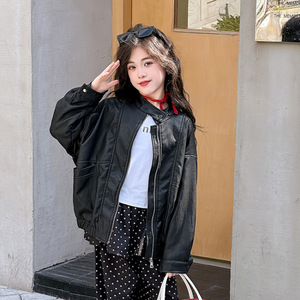 女童皮衣外套2025新款秋装儿童洋气时髦中大童女孩时尚PU夹克上衣
