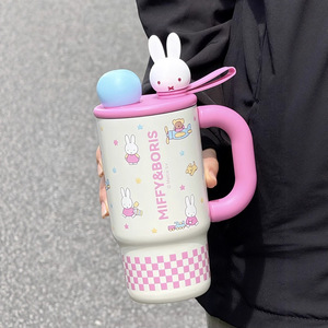 米菲保温冰霸杯820ML大容量316不锈钢真空保温水杯吸管直饮带手柄