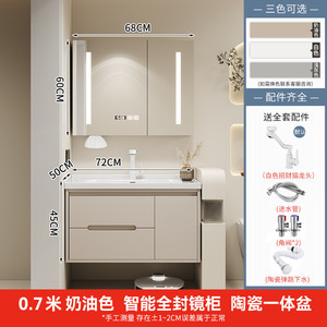 橡木门板半封智能镜柜款-奶咖70cm+优等陶瓷+ 招财猫龙头出口品质