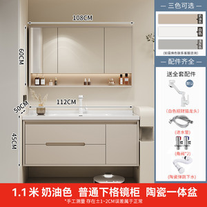 橡木门板半封智能镜柜款-奶咖110cm+优等陶瓷+ 招财猫龙头出口品质