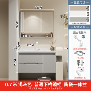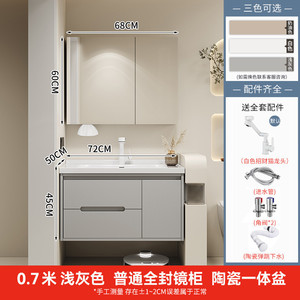 橡木门板半封普通镜柜款-银灰70CM+优等陶瓷+招财猫龙头出口品质