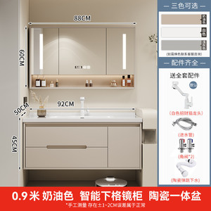 橡木门板半封智能镜柜款-奶咖90cm+优等陶瓷+ 招财猫龙头出口品质