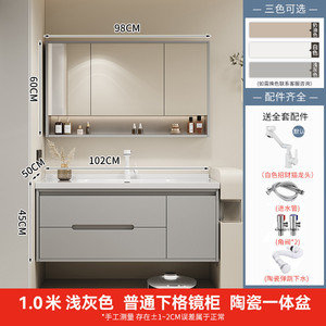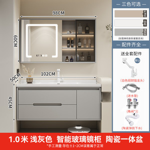 橡木门板半封智能镜柜款-银灰100cm+优等陶瓷+ 招财猫龙头出口品质