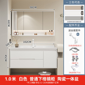 橡木门板半封智能镜柜款-纯白100cm+优等陶瓷+ 招财猫龙头出口品质