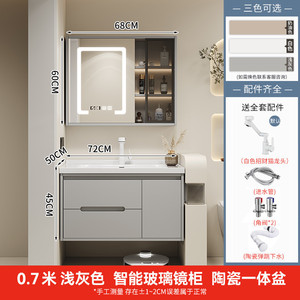 橡木门板全镜智能镜柜款-银灰70CM+优等陶瓷+招财猫龙头出口品质