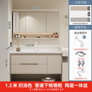 橡木门板半封智能镜柜款-奶咖120cm+优等陶瓷+ 招财猫龙头出口品质