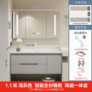 橡木门板半封智能镜柜款-银灰110cm+优等陶瓷+ 招财猫龙头出口品质