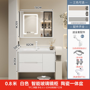 橡木门板半封智能镜柜款-纯白80cm+优等陶瓷+ 招财猫龙头出口品质