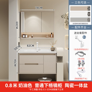 橡木门板半封智能镜柜款-奶咖80cm+优等陶瓷+ 招财猫龙头出口品质