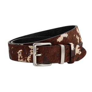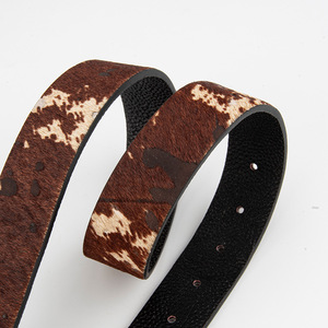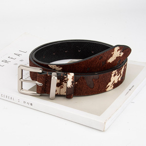 跨境潮流复古奶牛纹真皮腰带女士文艺银色针扣配牛仔裤高级感皮带
