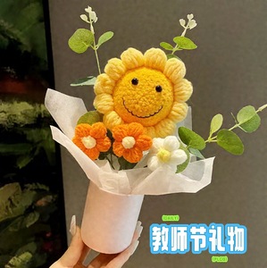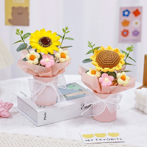 国庆节装扮向日葵成品抱抱桶花束diy针织毛线手工花束学校橱窗桌