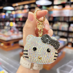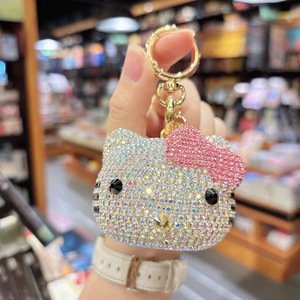 外贸热销镶钻凯蒂猫钥匙扣包包挂件跨境汽车钥匙链女生背包小挂饰