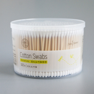 双丸头竹棒棉签脱脂棉涂指甲油眼部卸妆清洁耳朵500支盒装棉棒
