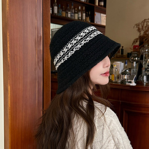 帽子女士含羊毛渔夫帽冬季韩版时尚拼色保暖护耳显脸小百搭水桶帽