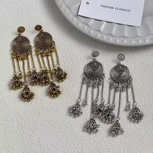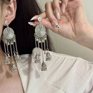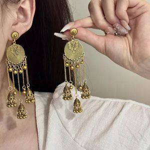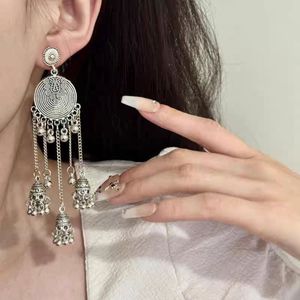 新中式复古做旧圆形铃铛长款流苏耳环民族风耳坠小众高级感耳饰品