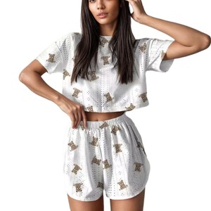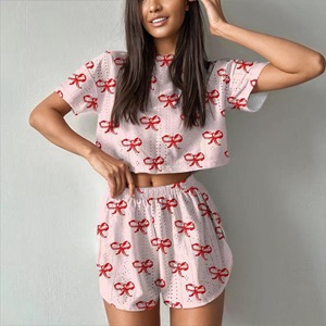 跨境欧美亚马逊睡衣家居服新款印花短袖短裤夏季女式两件套装提花