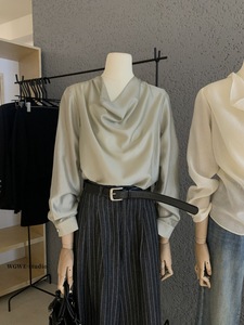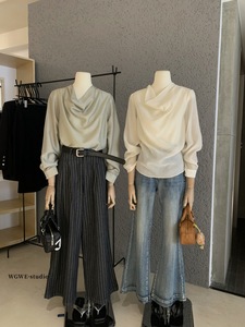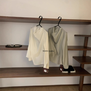 【WGWE】6931法式高级感荡领宽松气质长袖衬衫氛围感防晒衬衣上衣