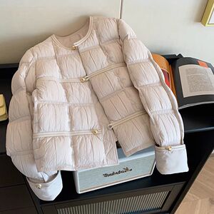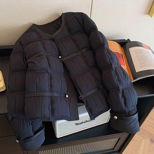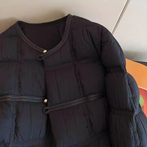 高级设计感黑色羽绒棉服女冬季大码胖mm气质好看百搭圆领棉衣外套