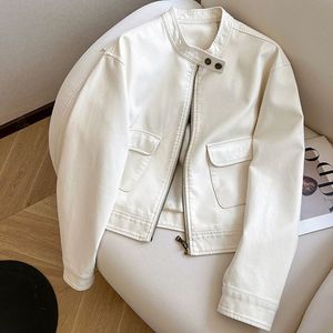 皮衣外套女短款2025春季新款蛋白皮小香风休闲百搭立领机车皮夹克
