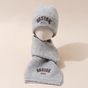 儿童针织帽子围巾两件套韩系秋冬个性宝宝毛线帽保暖字母刺绣围巾