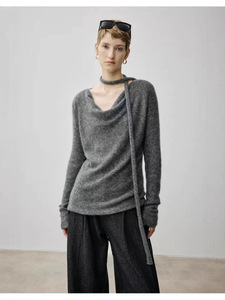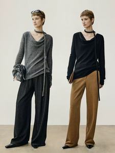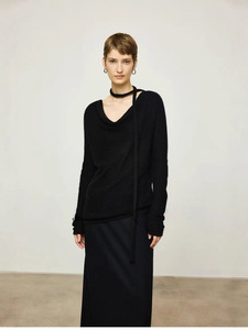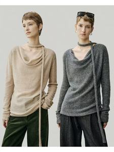 开间/羊毛蓬松轻盈女神松弛卷边小腊肠飘带荡领针织上衣内搭秋冬