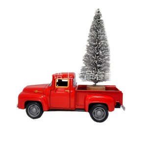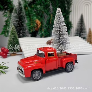 跨境热款红色小卡车搭配迷你圣诞树圣诞氛围装饰好物客厅卧室摆件