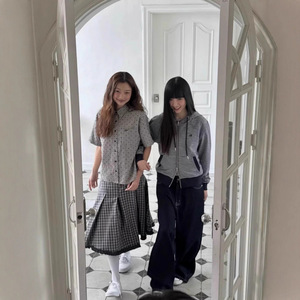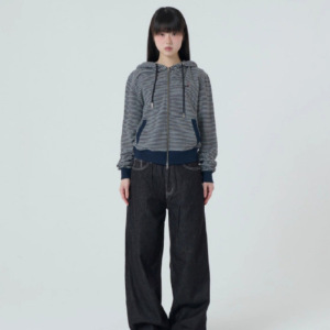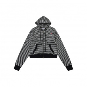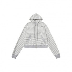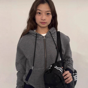 韩国aeae美式条纹 慵懒风复古宽松连帽字母刺绣卫衣开衫外套女