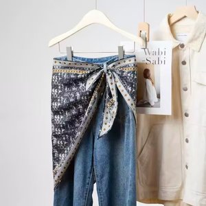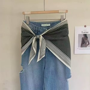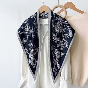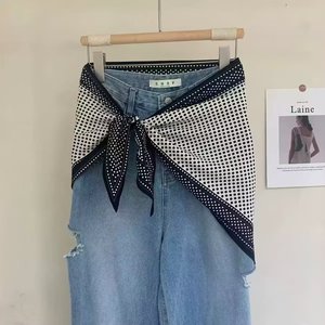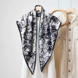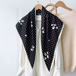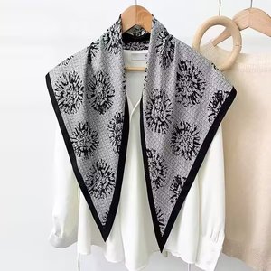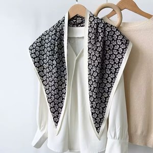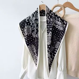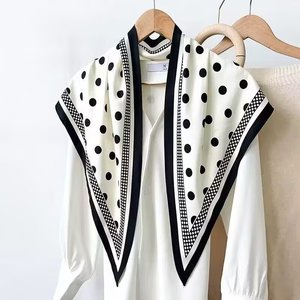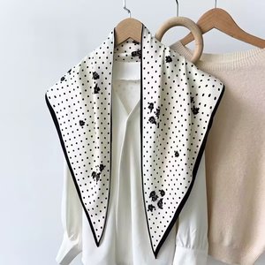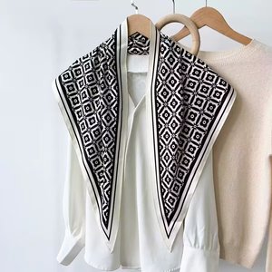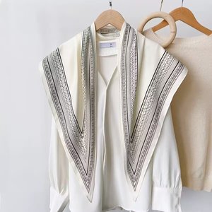 新款简约白色多功能披肩纯色极简菱形巾仿真丝斜纹凉感三角形丝巾