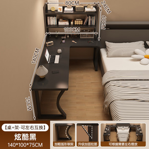 转角书桌书架一体电脑桌卧室家用女生梳妆台l型拐角学习办公桌子