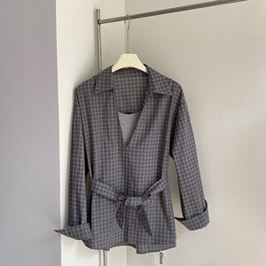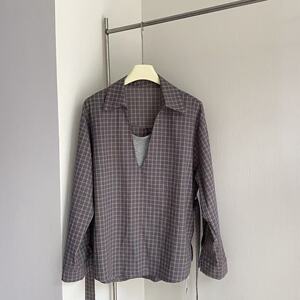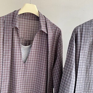 东大门同款2025秋季新款设计感收腰翻领假两件长袖衬衫女5155