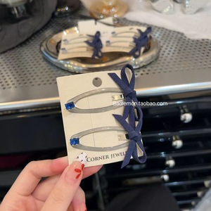 复古简约牛仔布艺蝴蝶结水钻BB夹甜美侧边夹前额碎发刘海夹掰掰夹
