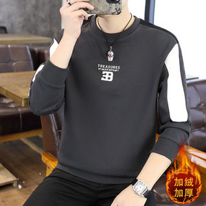 春秋季新款男士青年卫衣春秋季打底华棉刺绣拼接卫衣打底卫衣男